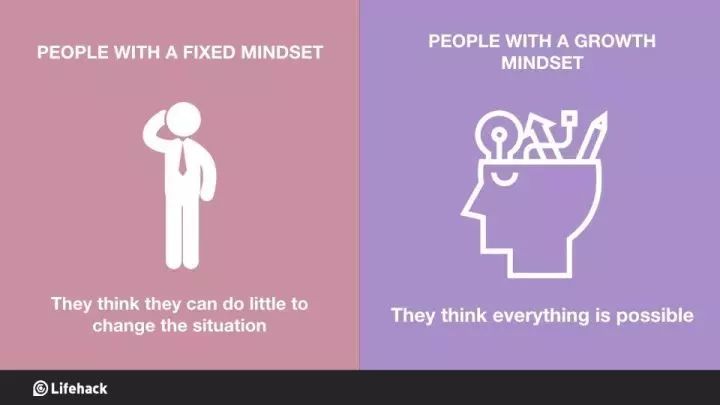 固定思维的人:在改变现状上无能为力。 成长思维的人:凡事皆有可能。