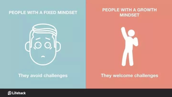 固定思维的人:规避挑战。 成长思维的人:欢迎挑战。