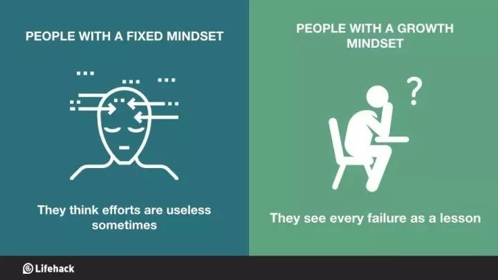 固定思维的人:有时候觉得努力是无用功。 成长思维的人:每次失败都是一堂课。