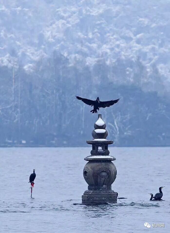 2018年的第一场雪 如约而至 整座城市都是银装素裹的 西湖也美成了故事,美成了诗