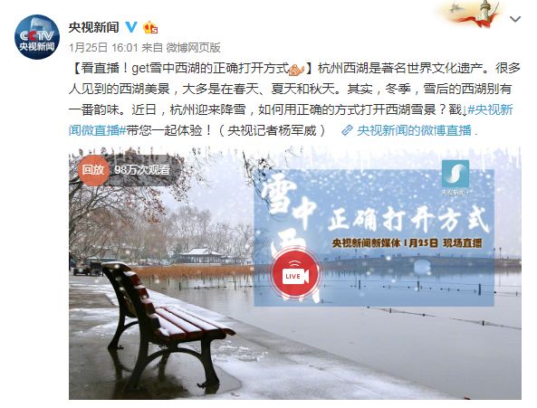 西湖就是这么霸气, 下雪了,央视直播来带着全国人民赏雪!