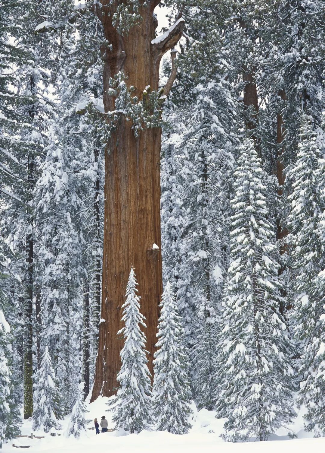 (美国盛产巨杉,体积十分庞大,下图为红杉国家公园的谢尔曼将军树,是地球上现存最大的单体树木,注意树下的游客;图片源自@VCG)