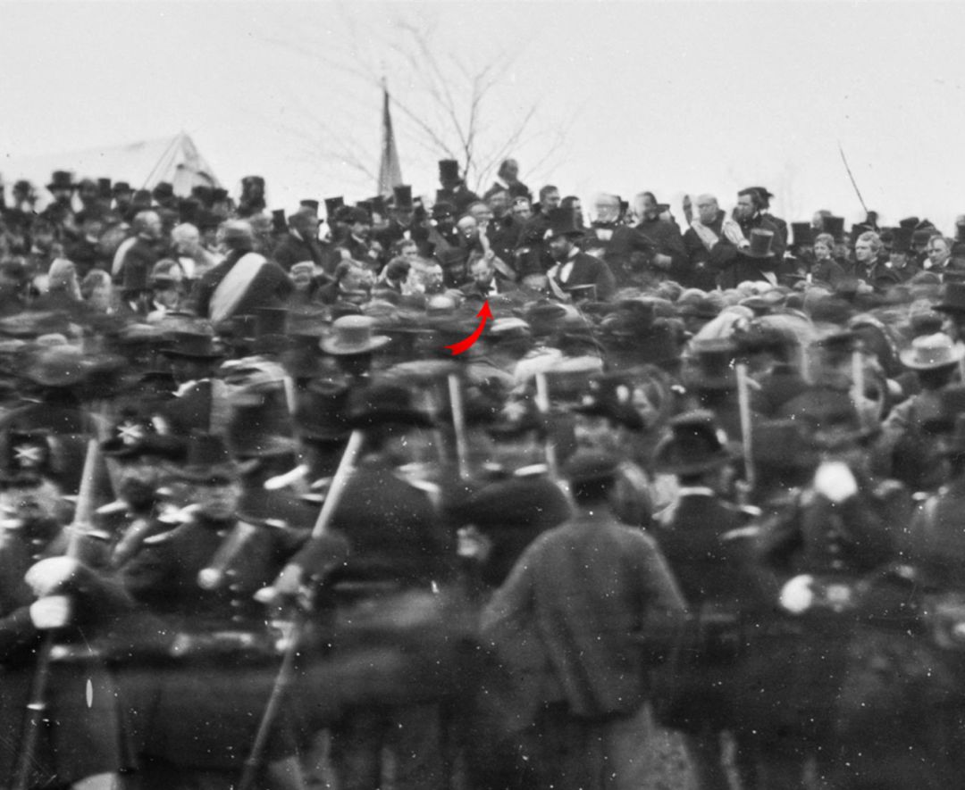 (红色箭头所指为林肯,右边是他的保镖,摄影师@David Bachrach)