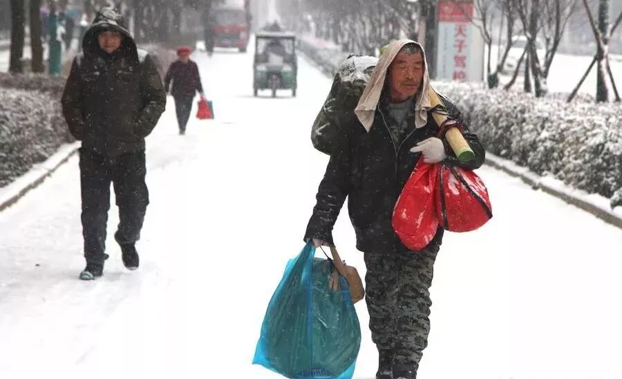 2018年1月25日早,洛阳降下暴雪,汽车站发往各县的公交停运,归家的农民工回家遇到了大麻烦。