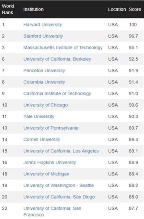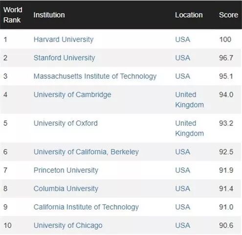 毫无疑问,美国的教育实力是非同小可的,这全球前一百名大学,美国占了51个席位,而前十的名单中,美国占了8个名额,英国剑桥与牛津以相当实力,打消了美国独占红榜的念头。