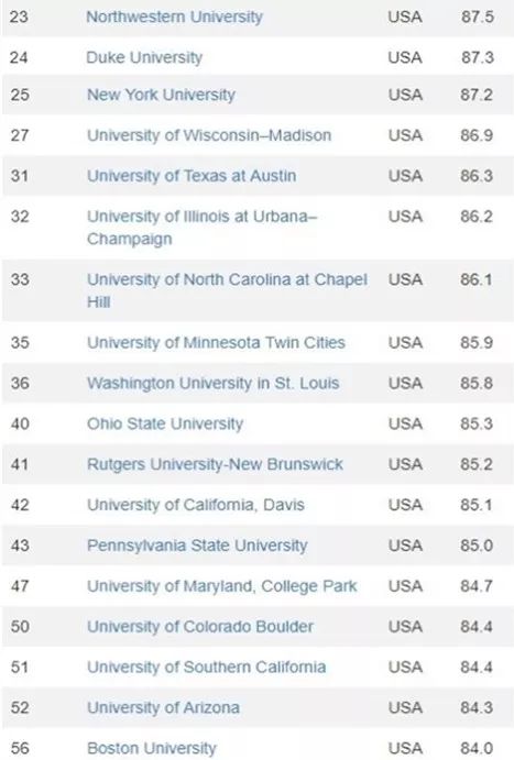 加拿大的学校也不甘落后,全加第一名多伦多大学,以总分88.7占据全球第17名的好成绩。其次是全球排名37,位于蒙特利尔的麦吉尔大学,还有全球第38名,位于美丽西岸城市温哥华的UBC以及以全球96名搭上末班车的阿尔伯塔大学。
