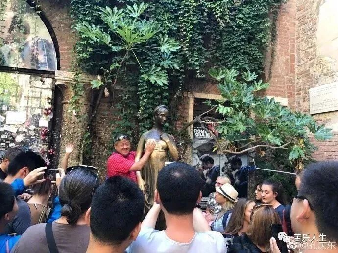 本文图片均来源于北大中文系教授孙庆东的微博 今日,翻阅朋友圈,被几张照片亮瞎了眼睛,又有中国人跑到欧洲文艺复兴发源地的意大利旅游去,站在名著《罗密欧与朱丽叶》中朱丽叶故居的雕像前面,伸手抹胸,留影纪念。