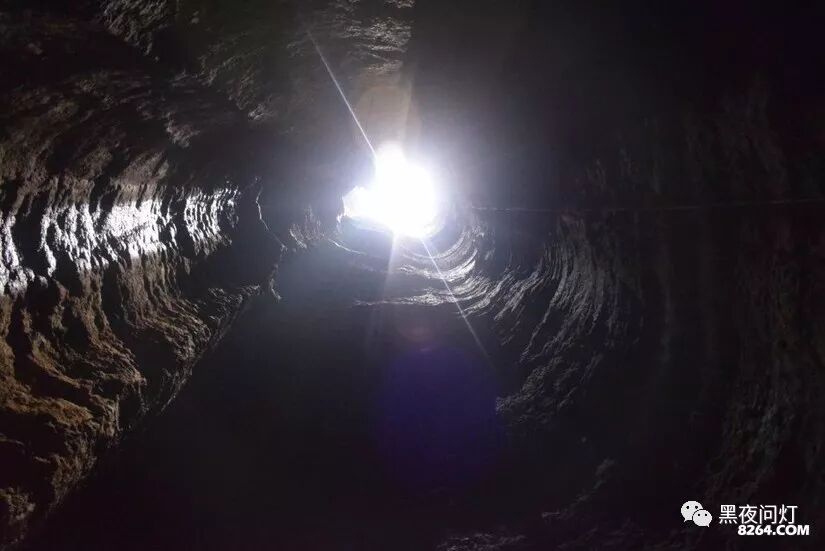 上午11点,全体队员到达竖井口,并开始打点设置下降路线。该竖井口宽近8米,深约70米,壁道光滑,有流水沿岩壁下淌。其形成与一至两百万年前第四纪冰川运动有关。为保证队员安全,由熟练的老队员带新队员下井,从探险队找到洞口、打点至全部队员完全进入竖井,已是夜幕。