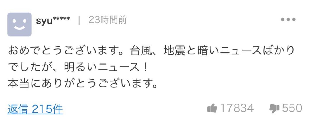 对于这次本庶佑的获奖,日本网友也表现出了极大的兴奋和喜悦。在连续暴热;台风;地震等众多灾难接二连三的今年,可以说这是一个及时的非常冲喜的好消息。