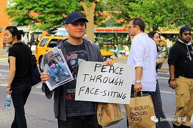 在美国,有一个名叫罗曼·舒斯特曼的白人小哥,在街头一直开展着一项让人羞羞且让很多人不解的运动——“坐脸换和平”运动。