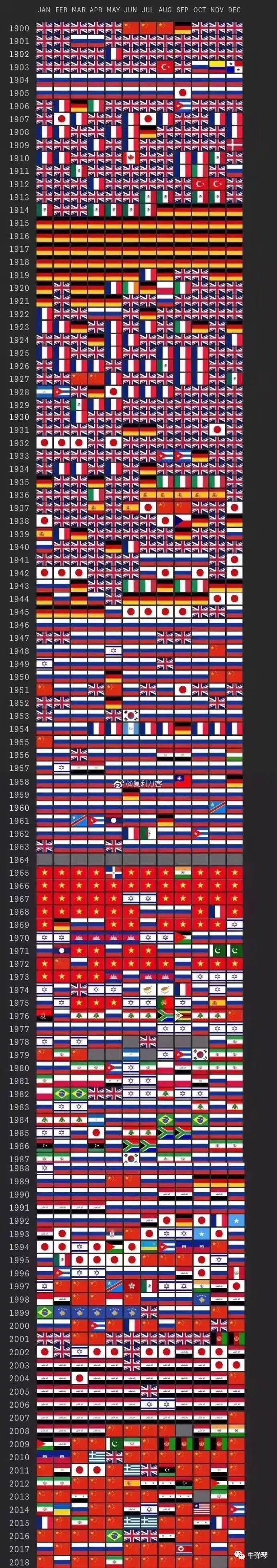 导言: The New York Times is an American newspaper based in New York City with worldwide influence and readership. Founded in 1851, the paper has won 125 Pulitzer Prizes, more than any other newspaper. The Times is ranked 17th in the world by circulation and 2nd in the U.S. (Wikipedia) 学者Russel Golderberg 独具慧眼,通过分析《纽约时报》1900年以来报纸头条,绘制了如下通俗易懂的图表,百年世界各大国的动态一览无余,尤其是中国的百年兴衰史,可令国人惊叹不已。