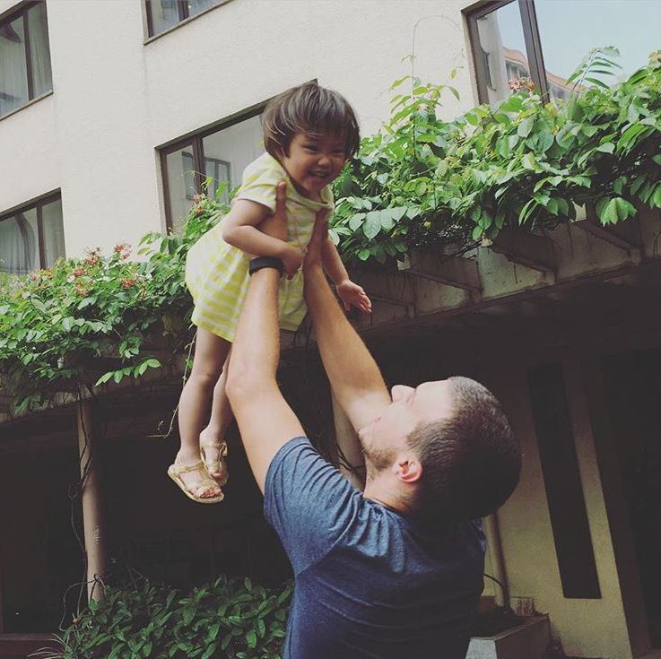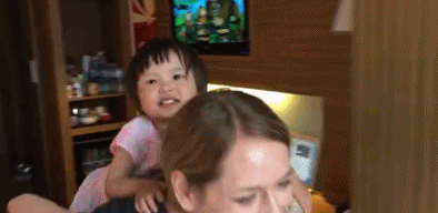 Selah也慢慢喜欢撒娇。比如,在爸爸的肩膀上捣蛋。