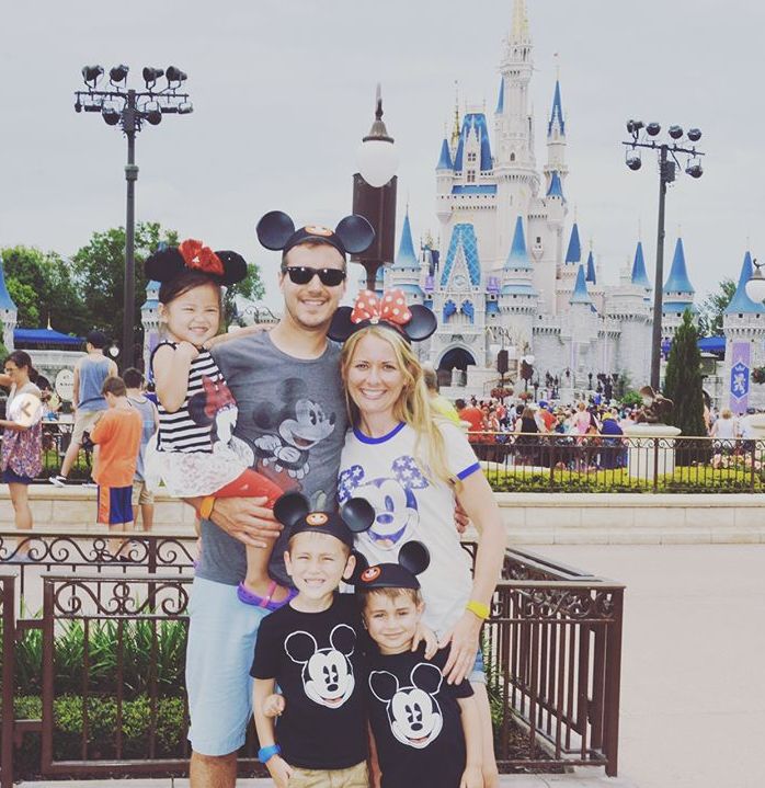 第一次去迪士尼公园,全家人看满天烟花绽放。