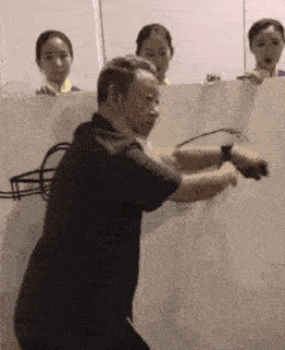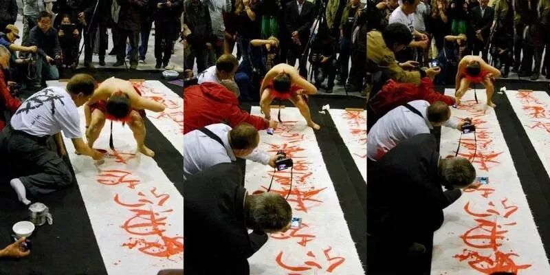 这一点在下面这位书法大师身上体现得尤为尽致。不光是他家那不要钱的纸墨,奋不顾身的动作更是达到了人笔合一的超脱。