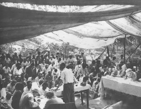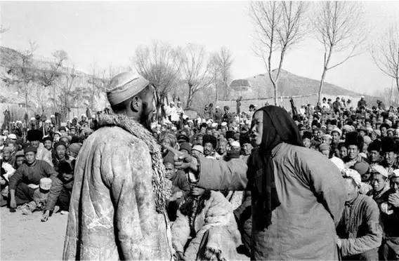 1951年,青海民和县土改中农民妇女与地主面对面进行说理斗争。茹遂初摄。