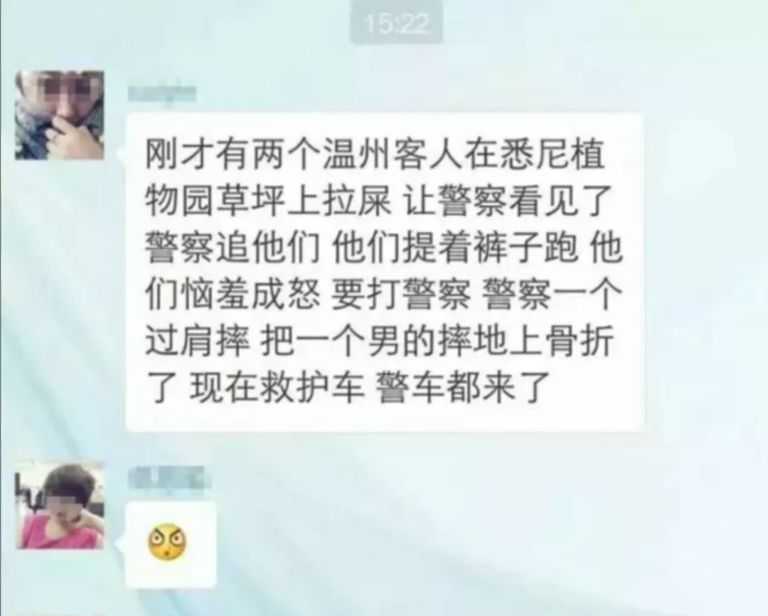 因为两个人都是游客,该罚的罚完了之后就大摇大摆地回国了,剩下澳洲华人替他们背了一个”随地大小便“的锅。