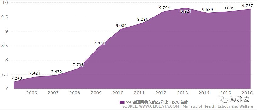 日本是一个高福利社会,医疗保障的费用支出长期占到国民总收入的9%左右,在日本,没有因为看一场病就倾家荡产的家庭。