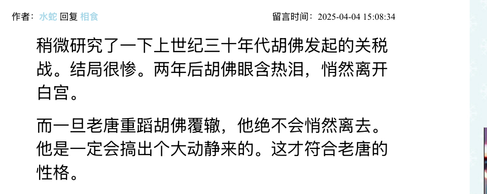 川普川大爷发动的世界关税战,正如火如荼地进行。股民们憋了一个周末,从四面八方吸取了海量信息,肯定有想法,吃不香睡不着,急不可耐,就等着周一早上开盘,开机按键下单。是卖光清仓,还是买进补仓?是万人同挤独木桥,还是老神在在慢品茶?这都是个人的决定。无论采取何种措施,别忘了留下晚饭钱哦。