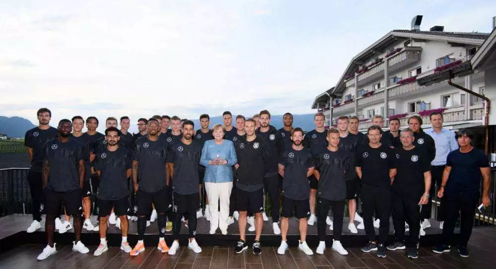 德国队球员在去机场的大巴上,集体板着脸 德国总理默克尔作为德国队的“头号球迷”,自担任德国总理以来,历届男女足世界杯、欧洲杯比赛,她都会到场为德国队加油助威。在本届世界杯开赛前,默克尔还探访了德国队训练营,与全队共进晚餐。