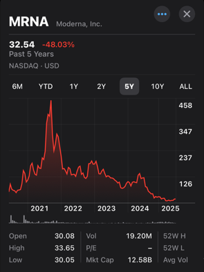 背景 财务背景:Moderna 的营收已从 2022 年的 189 亿美元急剧下降至过去一年的 31 亿美元,由于新冠疫苗需求减弱,预计 2025 年营收约为 21 亿美元。然而,其 mRNA 平台和产品线(例如流感疫苗)仍然前景光明。 市场动态:受贸易政策不确定性影响,标普500指数7月8日下跌0.1%,但Moderna表现优异,表明存在特定股票的催化剂。 风险:Roivant对Moderna提起的专利诉讼将于2025年9月开庭审理,鉴于Moderna超过40亿美元的现金消耗,该诉讼对其财务稳定构成风险。 支持信息 股价走势:上方图表显示,MRNA开盘价为30.08美元,最高触及33.629美元,收盘价为32.54美元,盘中涨幅最高约为12%(例如,美国东部时间上午11:00为33.406美元)。 近期表现:过去一个月,MRNA从27.90美元(6月9日)上涨至32.54美元(7月8日),涨幅约为16.7%,反映出看涨趋势。 分析师情绪:尽管 mRNA 平台的安全性和商业可行性令人担忧,但一些分析师(例如 Leerink Partners)仍维持“卖出”评级。 建议 投资者:mRNA 平台的飙升反映了短期乐观情绪,但 Moderna 的高现金消耗、持续下滑的收入以及即将提起的专利诉讼值得谨慎。请密切关注法律动态和研发管线的进展(例如 mRNA-1010 的获批)。 进一步研究:查看雅虎财经等平台上的实时数据,或查看 Moderna 2025 年第一季度的业绩,以获得更深入的财务洞察。 关于 X 帖子的说明:X 帖子上的情绪(例如 @BornInvestor 质疑诉讼的乐观程度)表明观点不一,因此在采取行动之前,请考虑更广泛的市场和法律风险。 如果您需要对 Moderna 的财务状况或研发管线进行更深入的分析,请告诉我!