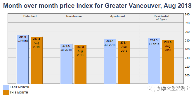 温哥华的房市,“羞嗒嗒的玫瑰,静悄悄地开”。温哥华地产委员会发布了8月最新的房市报告,各类房型价格都在跌跌跌!