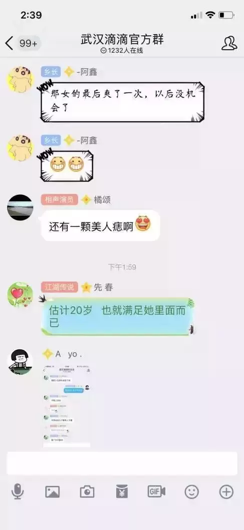 在案情曝光没多久,就有网友爆出“武汉滴滴司机群”里的聊天内容。