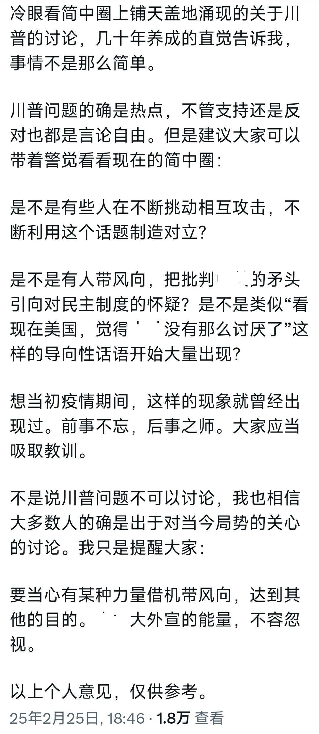 虽然有许多话题可聊,但都不如美俄的动向更值得聊。 我个人觉得,作为普通屁民,所掌握的信息十分有限。现在知道了欧洲各国援助了乌克兰1000多亿美元(跟美国差不多,比美国多一些些),但欧洲各国三年时间向俄罗斯购买能源等支出了2000多亿美元,也就是说欧洲实际上是在帮助普京打乌克兰,这才是战争永远打不完的根本原因。这可能也是川普对欧洲无比火大的原因。 大家再怎么不喜欢川普,甚至由川粉转川黑,都没关系,我们对政客无需粉或黑,就事论事就好,关键看TA做了什么。不得不承认,川普还是喜欢和平的,他希望结束无谓的杀戮,当然他更担心美国被拖在这个没有尽头的泥潭里而耽误了美国与中共对决的机会。 现在,终于看到一点希望了,因为欧洲动了,虽然还没有团结一致地动了,但起码大致达成了一致,对付俄罗斯。这样,这场战有可能不会再支撑太久。 我今天要聊的不是这场战而是这场戏,即川普导演并主演的这场戏最终将如何收场。 我们看问题,一定要跳出问题的本身来看,即“不知庐山真面目,只缘身在此山中”。 可能很多人都不会关注到昨天溪猪跟普战犯通话这个消息,实际上,这个消息是解锁川普这场戏的关键。 溪猪为何跟普京通话。据中共国的报导,溪猪又是“应约”与普京通话,而据外媒报导,是溪猪打给普京的。 这些细节都是有不同意义的。想一想,现在普京有什么理由或原因打电话给溪猪?战争在川普介入之后,都快要结束了,普京再也不需要求着溪猪看溪猪的脸色了。所以,这一通电话非常可能是溪猪打给普京的。那我们又得想一想,为何溪猪主动给普京打电话。 我们从溪猪与普战犯通话的内容可以看出:溪猪害怕普京把它卖了。整个通话过程没有任何实质性的东西,全面无聊的好邻居之类的屁话。这非常明显地反映出溪猪强调的是普京你别出卖了我,你别因为战打不下去了就屈服于老川头的忽悠,咱还是穿一条内裤的“铁”哥们,咱俩之间友谊无上限。 从最近几个月中共国与俄罗斯之间的关系也能够非常明显地看出,普度正在把中共当作送给川普的投名状,包括扣押中共国的集装箱、跟北韩在图门江上修桥、在东北边界布置蛇笼铁丝网等,非常明显地正在与中共分道扬彪。 再看俄罗斯普京。因为战打不下去了,而且没钱了,普京急于与川普媾和。在听说乌克兰不愿意跟美国签矿产协议的时候,(中共又以稀土作为应对美国的关税制裁的手段),普京马上表示美国可以跟俄罗斯签。这似乎也是美俄沙特会谈所定的框架内容之一。 所以,这场戏在主要场景已经不在乌克兰上了,已经转向印太了,即川普在千夫所指的情况下,已经轻松抽身,把美国的重点转向中共国,美俄联手对付中共正呼之欲出。 |