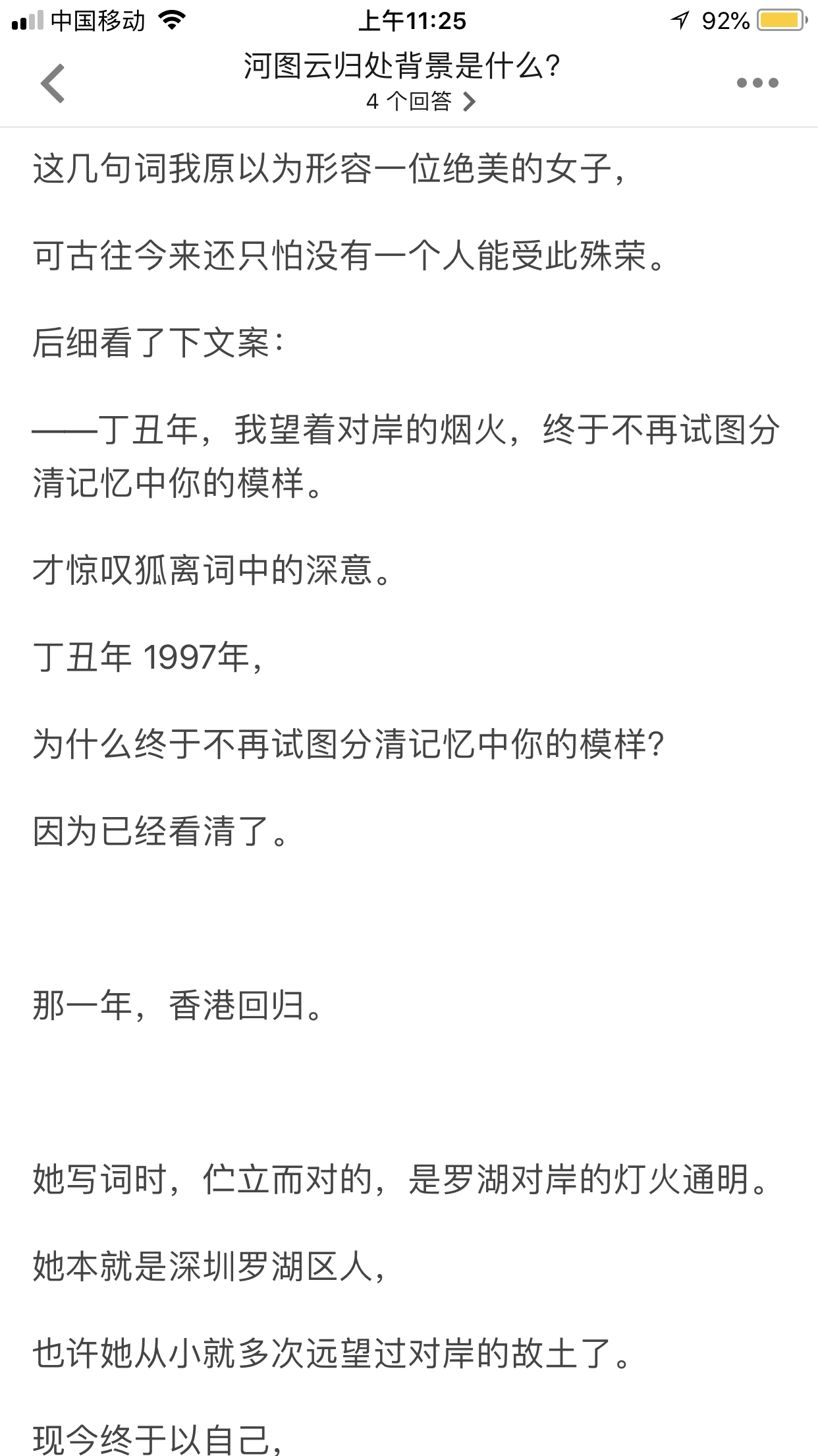 但其实后来再听时,觉得“你”更像是爱情本身,是梦、是痛、是风、是空;是拨开云雾难见真容、是薄如蝉翼见血封喉,这难道不也可以说是在形容爱情本身?要尝过多少苦辣艰辛,历过多少山重水复,只为了窥探见它的真容,身在其中,又有多少似真似幻。它曾是每个人心中的英雄梦想,也是多少人心中的求而不得。 后来又查了对这首歌的解释,却发现一个更有趣的我从未想过的答案。有人说,1997年,其实说的是香港回归。为什么不再试图分清记忆中你的模样?因为已经看清了,你终于回来了。