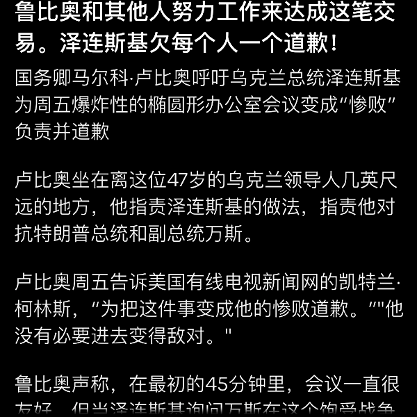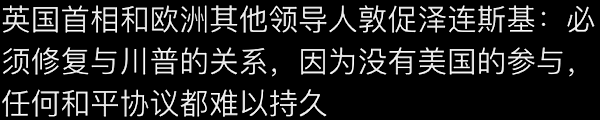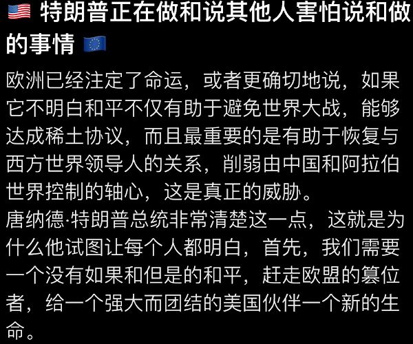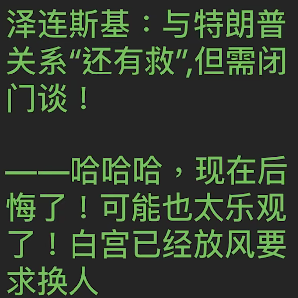 每个人都表达了看到战争结束的目标,我强调了美国和乌克兰之间重要的“关键矿产和稀土协议”的重要性,我们希望该协议能很快签署! 这项“经济伙伴关系”协议将确保美国人民收回运往乌克兰的数十亿美元和军事装备,同时在这场残酷和野蛮的战争结束时帮助乌克兰经济增长。 与此同时,我正在与俄罗斯总统弗拉基米尔·普京就战争的结束以及美国和俄罗斯之间将要进行的重大经济发展交易进行认真的讨论。
