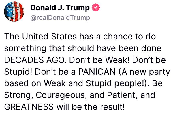 特朗普总统的经济愿景植根于常识,美国将为公司提供最低的税收、能源成本,美国对等关税法规,如果他们在美国生产产品,并雇用美国工人从事这项工作…