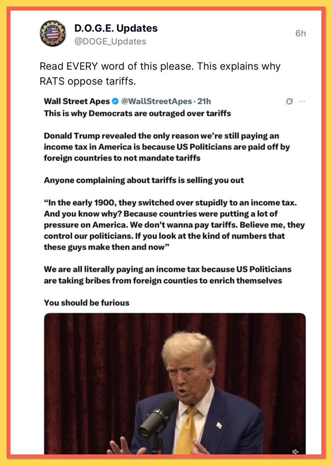 舒慷慨、写选战、记国风。随身起舞,舞出自由之豪情。细检《美国简史》,详查人类文明,未有此鹰风。人民登山唱,流韵壮西风。 ~~~~~~~~~~~~~~~~~~~~~~ 川普归来,美国的黄金时代开始! ~~~~~~~~~~~~~~~~~~~~~~~~~ 大道至简美国优先——MAGA •让美国再次安全 •让美国再次具有负担能力并占有能源主导地位 •排干沼泽 •恢复美国价值观 ~~~~~~~~~~~~~~~~~~~~~~~~~~~~~ 政治止于边界,川普对等哲学, Truth&Common Sense,信仰上帝忠于自己。 ~~~~~~~~~~~~~~~~~~~~~~~~ 大陆中国六无:无哲学无逻辑无历史无真相无法无天 ~~~~~~~~~~~~~~~~~~~~~~~~~~ 深层政府解剖学和生理学 作者:Jim Davis 2025年4月2日 IT专家和律师助理,拥有政治学和统计分析学位:所有科学的基础。他的作品出现在Newsmax和Daily Caller上。
