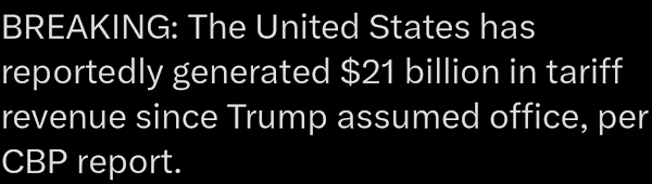 所有这些关税事态发展意味着美国和唐纳德·特朗普可以从相对实力的立场上与中国进行谈判。不过所说的中国指大陆中国。不幸的是,中国永远收不回台湾了——大陆中国死穴。