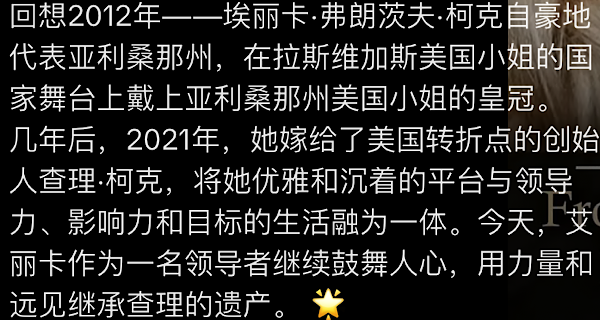 •埃里卡正式接掌美国转折点,战斗才刚开始。 •柯克遗孀誓言守护丈夫遗产,呐喊震撼全美!