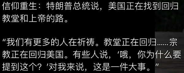 川普总统的MAGA已经成为一场政治运动和政策议程。但要使其成为持久的现实,需要对最初使我们国家伟大的原因有深刻的理解和承诺。这样,仁慈的宗教之光就可以让我们保持足够的自由......山上的伟大城市的光芒会照亮未来。 The hope is always on tomorrow morning。