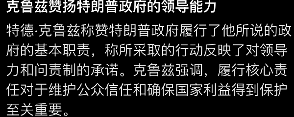 在特朗普政府执政满一周年之际,美国国务院中文发言人贾博接受了美国之音(VOA)中文部的专访。他表示,国务院对本届政府第一年的外交政策成果“十分满意”,并引述国务卿马尔科·卢比奥的话形容这是二战结束以来“最具变革性”的一年。他强调,唐纳德·特朗普总统在美中关系、印太地区安全、对等贸易以及与盟友关系方面发挥了关键领导作用,相关政策为美国经济、安全以及全球战略布局带来了“实实在在的利益”。