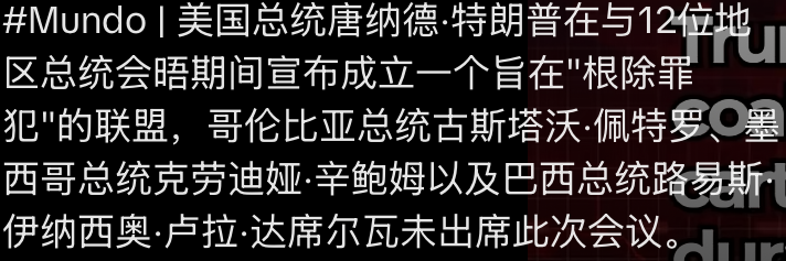 周六,唐纳德·特朗普将频道从伊朗改为西半球,在他的迈阿密地区高尔夫俱乐部召集了拉丁美洲领导人,讨论区域利益,并建立他所谓的“反卡特尔联盟”。