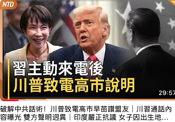 日本首相高市早苗(Sanae Takaichi)星期二(11月25日)透露,她与美国总统唐纳德·特朗普(Donald Trump)举行了电话会谈,这是在特朗普与中国领导人习近平通话后发生的。