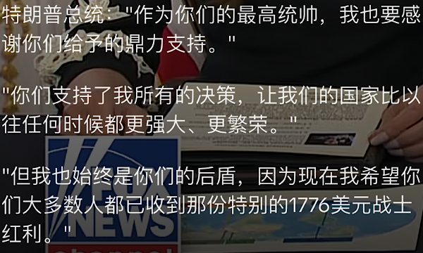 特朗普总统在他的2017年圣诞致辞中提到:“每一年的圣诞节,我们都认识到,真正的圣诞精神不在于我们拥有什么,而在于我们是谁,我们每个人都是上帝的孩子。这才是每年这个时候的真正喜乐源泉。这才让每个圣诞节都充满快乐。”