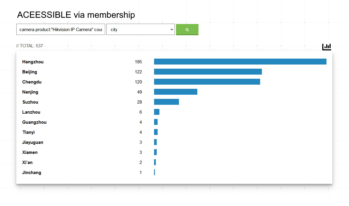 如果我们继续点击中国区,就会发现杭州的IP摄像头在第一位,第二位是北京,天津,厦门和成都随后。