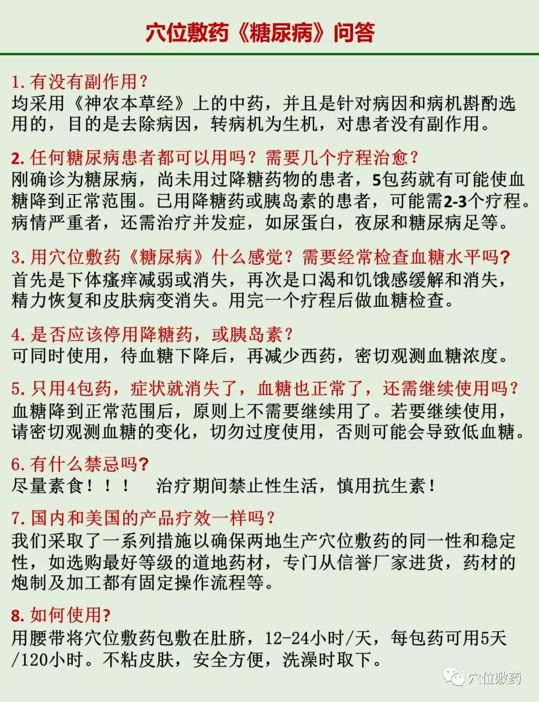 大约停药250天后,即2019年1月中旬,患者又出现口渴和饥饿的证状,所以又开始使用穴位敷药《糖尿病》,待证状消失后,就停止使用了。 2019年10月5日随访,即在患者第二次使用穴位敷药《糖尿病》后的300多天,只是间断性地使用穴位敷药《糖尿病》,能够有效地维持着血糖不超过6.0毫摩尔/升,并保持着没有明显的糖尿病证状。 穴位敷药治愈糖尿病:不吃药不打针 她的确很幸运,在确诊为中度糖尿病后的550天,即十八个月,没有使用任何西医药物,一直能够维持血糖在正常水平,也没有明显的糖尿病证状。但是,每天新增加的另外14999个糖尿病患者的命运呢? 糖尿病患者人均减寿9年 目前西医治疗糖尿病需终身用药,但是,绝大多数患者即使按照医生的要求去饮食、运动和按时使用降糖药物,还是会逐渐出现可怕的并发症。 中国慢性病前瞻性研究(China Kadoorie Biobank Study)显示:与无糖尿病的人群相比,中国成年人糖尿病患者人均减寿9年 新路已开辟,必有同行者 中国的1.3亿糖尿病患者,不仅知道西医疗效不理想,而且还感到终身用药的无奈。其中,必有善于独立思考,敏于行动的群体,他们对穴位敷药的实效性,安全性和治疗的费用,会有自己的判断。