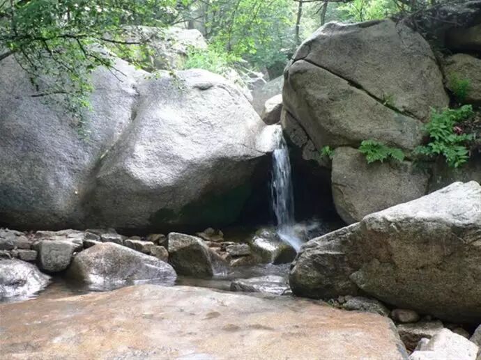 凤凰山的山门旁边,我们锁好了车子就上山了。沿着旁边的一条小路,路过几户人家,就到了一条山涧前。山水冲到这里,虽然还挺急,但已经平缓了许多,一排大石头成了一条路,我们从石头上走过,水从石头旁边流。下了石头,前面一个接水处,山泉从深山中流到这里后,流进了人安装好的水管子,当它流出来后,就成了天然的矿泉水。一些人拿着塑料瓶子,正在这里接水。 沿着山路继续向上走,一边,山涧中流水哗哗,另一边,绿树成海,静默无声。走了五六分钟后,到了又一个接水处,这里接水的人就少了许多。再往上走七八分钟,到了第三个接水处,几乎就没有什么人接水了。此处的山泉最醇,对着细细的水流直接喝后,口中含香。 再向前的路突然陡起来,很窄,几乎被浓密的树叶子遮住了。有时,需要拽着扶着两边的树干向上走。再走七八分钟的山路,弟弟说,到了,这就是咱们凤凰山的天体浴场。