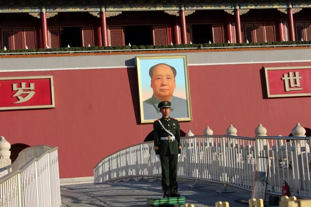 我站在金水桥前,先是侧着看伟大领袖的画像,接着从正面看,每个角度看时,都看到了一个年轻的军人立正在那里,军帽与领袖巨大的脸合在一起,军人跨着肩膀还系了一条白带了,不知道什么意思。正在我迷糊的时候,一条毛语录钻进了我脑子里:“枪杆子里面出政权。”