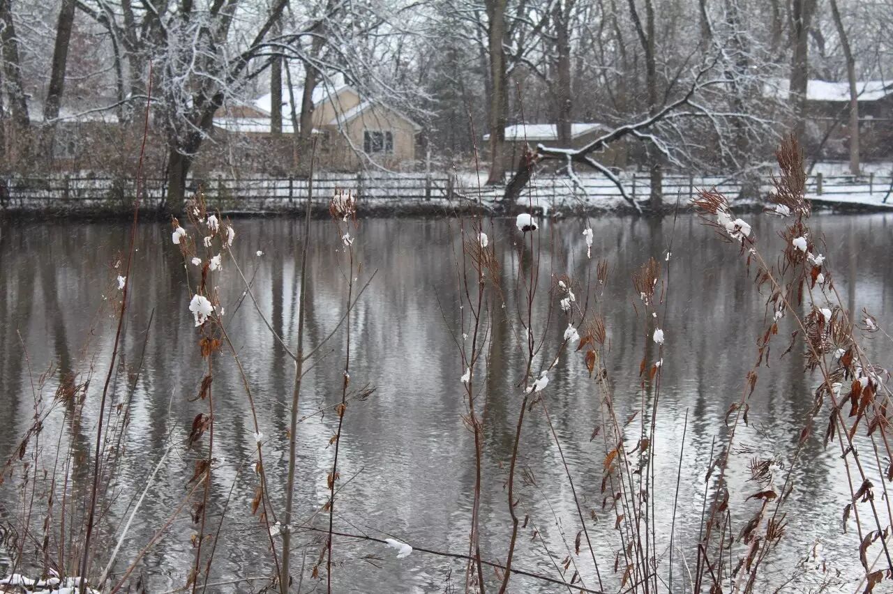 我们继续散步,儿子不肯在柏油路上走,他要在雪地上留下自己的脚印,看到一条小水沟结冰了,他就一块接一块地把冰踩碎。趁他玩得正高兴,我又问,那你们老师教不教你们要爱美国兵啊?