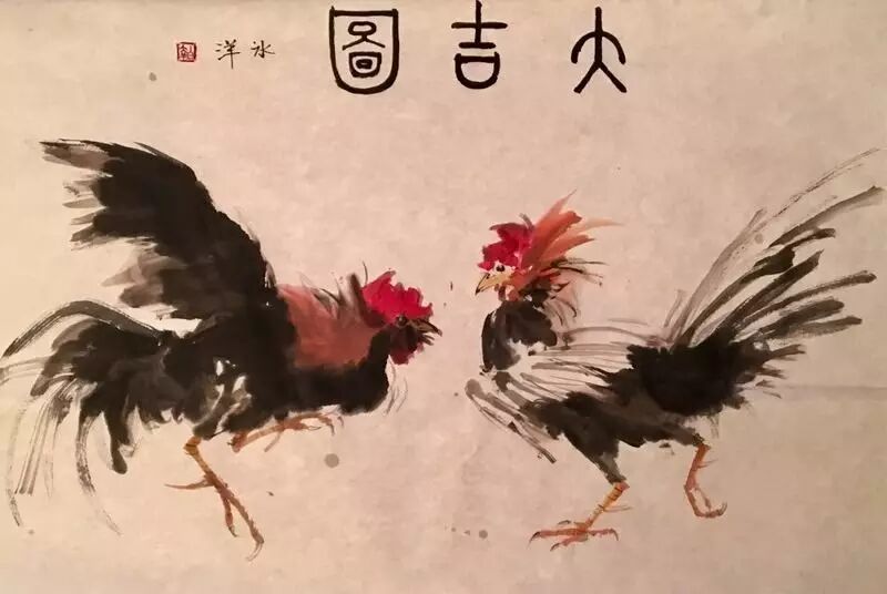 (白冰洋画的两只鸡)