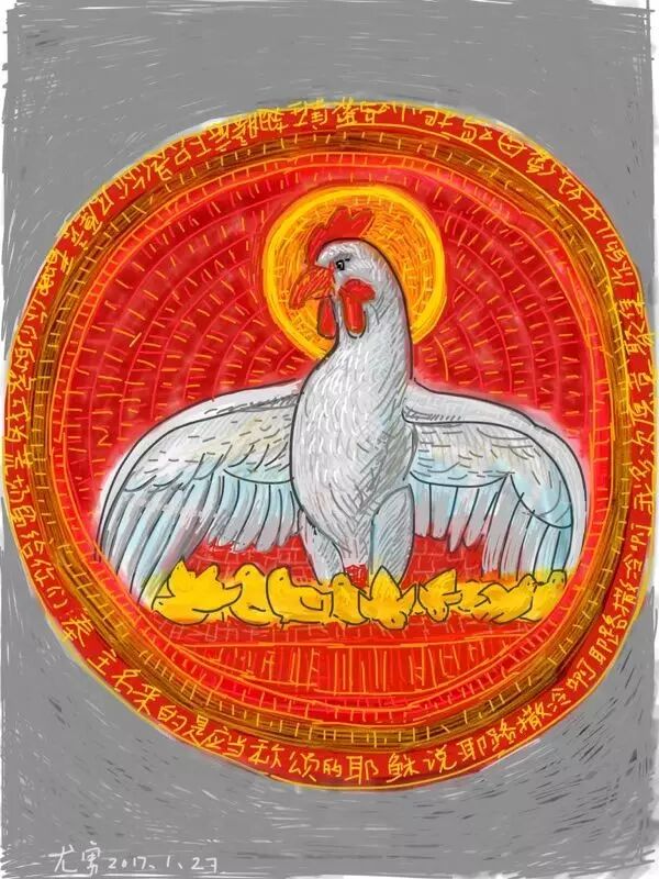 虽然我早就说了,千万别给我拜年,但还是挡不住,从大年三十下午开始,就陆续有人给我发新春贺词了,大都带有鸡的图片。看了几张之后,我突然想起了图案,就是一只老母鸡带着七只小鸡雏。它告诉了我们一个重要信息,这是耶稣离开这个世界之前对世人说的话,它记载在《马太福音》中: