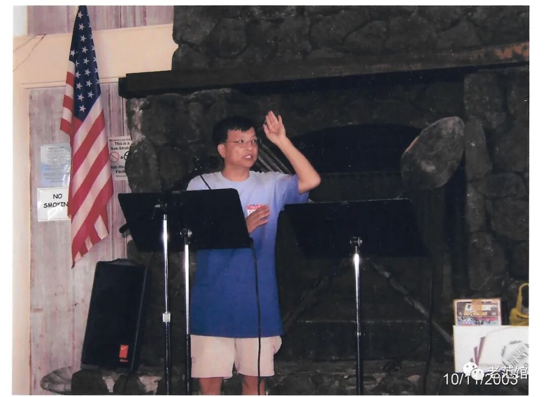 胡晋生站在麦克风前刚说了一个“我”字,就说不下去了。安静了一会儿,他又说了一个“我”字,但还是说不下去。晋生流泪了,哭出了声。他流着泪断断续续地说:“志勇,铁石,刚才范弟兄呼召的时候,我就在心里为你们祷告……。” 晋生再也说不下去了,流着泪回到了自己的座位。 我深信晋生为这两位兄弟祷告了很久很久。 过了一段时间后,蓝正弟兄邮给我了几张营会的照片,我遗憾地发现,我最后那一场布道竟然没有穿夏威夷衫。