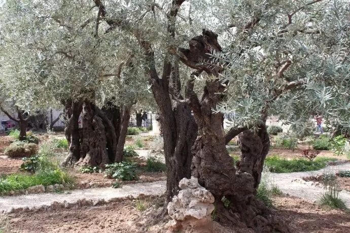 黑夜,清寒,山畔,圆月当空,树林茫茫,重重树影摇动,起起伏伏的山岩一片沉寂,只有他一个人,伏在巨大的岩石上祈祷。不远处,他三个心爱的门徒已进入梦乡。这就是我多年来想象的一幅图景:客西马尼园(Garden of Gethsemane)。 2015年3月10日,临近中午时,我这个想象被彻底击碎了,朗朗晴天下,我在丝丝暖意中走进了客西马尼园,一个小小的园子,平平整整,跑一圈,大概也不过四百米,有人算过,就1200平方米。没有树林幽深,岩石叠嶂,也不见一块大岩石平地而起,唯有几棵橄榄树枝叶繁茂,古老的树干黝黑,几个人才能合抱起来。