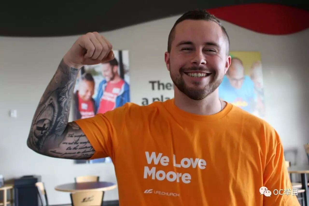 Moore的教堂才特别注意到了这一点。大门口,两个老人欢迎每一位来者,他们身穿红色的体恤衫,上面印着Life