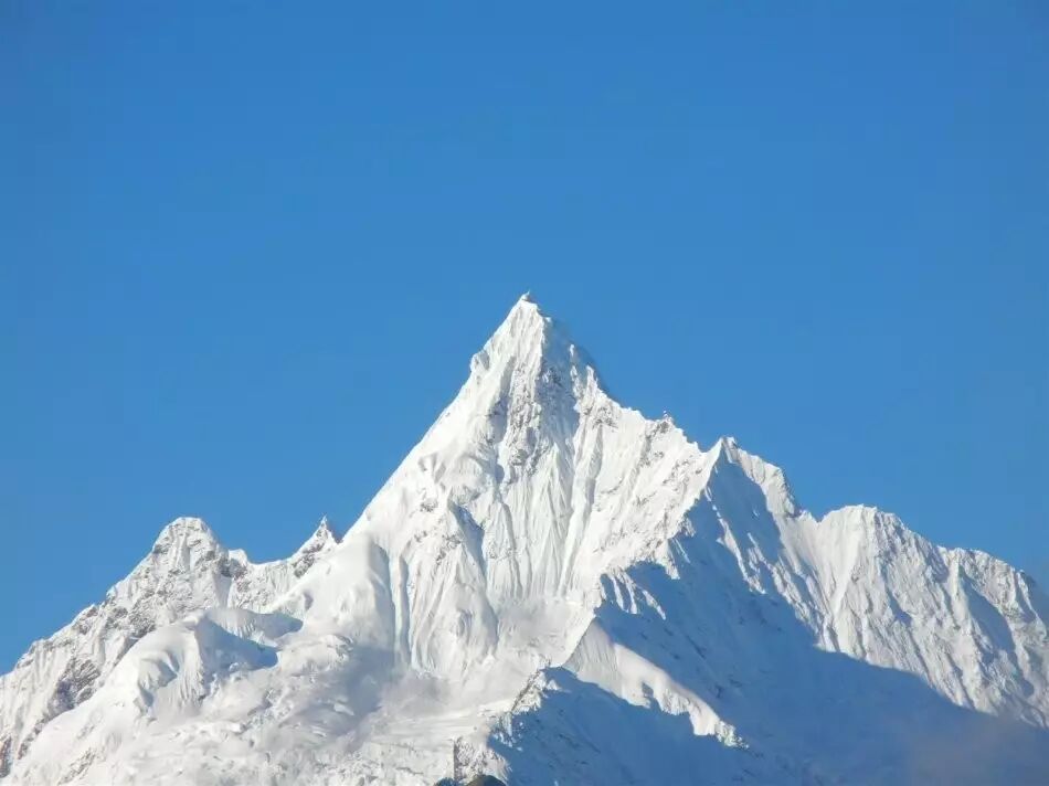 梅里雪山最美、最险、最纯洁 10月中下旬,是游览梅里雪山的最好季节。2012年我就碰到了哪个季节去了梅里雪山,还捧到了白石、韩博和小司布真一路同伴。都快到梅里雪山了,才听到司机兼导游洛桑尼玛说,在藏语中,梅里雪山被称为卡瓦格博山,说它是藏族人心中的神山,它有十三个山峰。在藏文经卷中,这十三个高峰都被奉为“修行于太子宫殿的神仙。”在藏人心中,卡瓦格博山为八大神山之首,统领群山,即使世界最高峰珠穆朗玛,也向卡瓦格博雪山的最高峰卡瓦格博峰俯首。 穿过了重重雪山,洛桑尼玛说,看,那就是梅里雪山。 我们有人尖叫,有人哭了,我失去了言语。