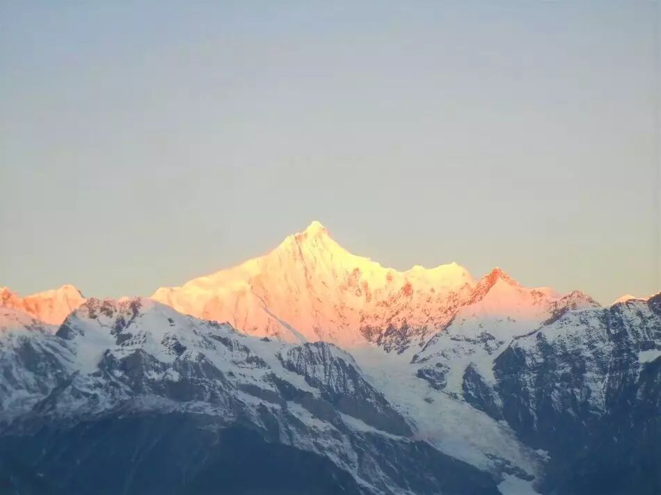 我怎么也没想到有生之年会看到这样一座山,他一身白衣,挺立在湛蓝的长天之下,神圣得让我喘不过气来。记得在加拿大的班佛国家公园,我也看到了许多雄伟壮丽的雪山,但那时我只想到了伟大,我从来没想到会把纯洁,美丽,雄伟险峻,变幻万千这些词,都用在一个山上,这就是卡瓦格博雪山。我也登过许多名山,泰山,华山,黄山,长白山,等等,但与卡瓦格博雪山相比,泰山失去了圣洁雄伟,华山愧称险峻,黄山说不上奇幻,长白云休言厚重,而它们其中没有一座能与圣洁相连。 有人说,卡瓦格博雪山是不可描绘的,任何描绘其细微之处的美丽,都只是描写了很少的一部分。又有人说,卡瓦格博雪山是全世界最美的山,人可以从千万个角度去描绘它的美,但都书写不尽。而我,从看到卡瓦格博山的第一眼起就知道,在我看过的所有的山中,卡瓦格博山最美、最险、最纯洁。